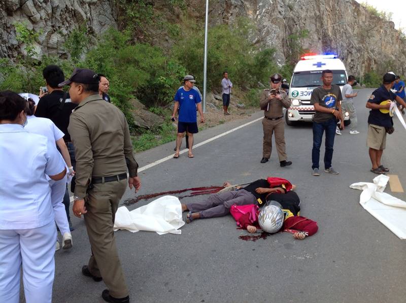 และน.ส.กรรณิการ์ มีบาดแผลถูกยิงด้วยอาวุธปืนขนาดเดียวกันเข้าที่ท้ายทอย 1 นัด แก้มซ้ายทะลุหมวกกันน็อค 1 นัด ห่างจากจุดพบศพประมาณ 20 เมตร พบรถจักรยานยนต์ยี่ห้อยามาฮ่าฟีโน่สีแดงดำ ทะเบียน ขงต 501 กาญจนบุรี ของฝ่ายหญิงจอดอยู่และที่บนเนินริมถนนบมีรถจักรยานยนต์ยี่ห้อฮอนด้าเวฟ สีขาวทะเบียน 1 กจ 3196 เพชรบุรี ของฝ่ายชายจอดอยู่